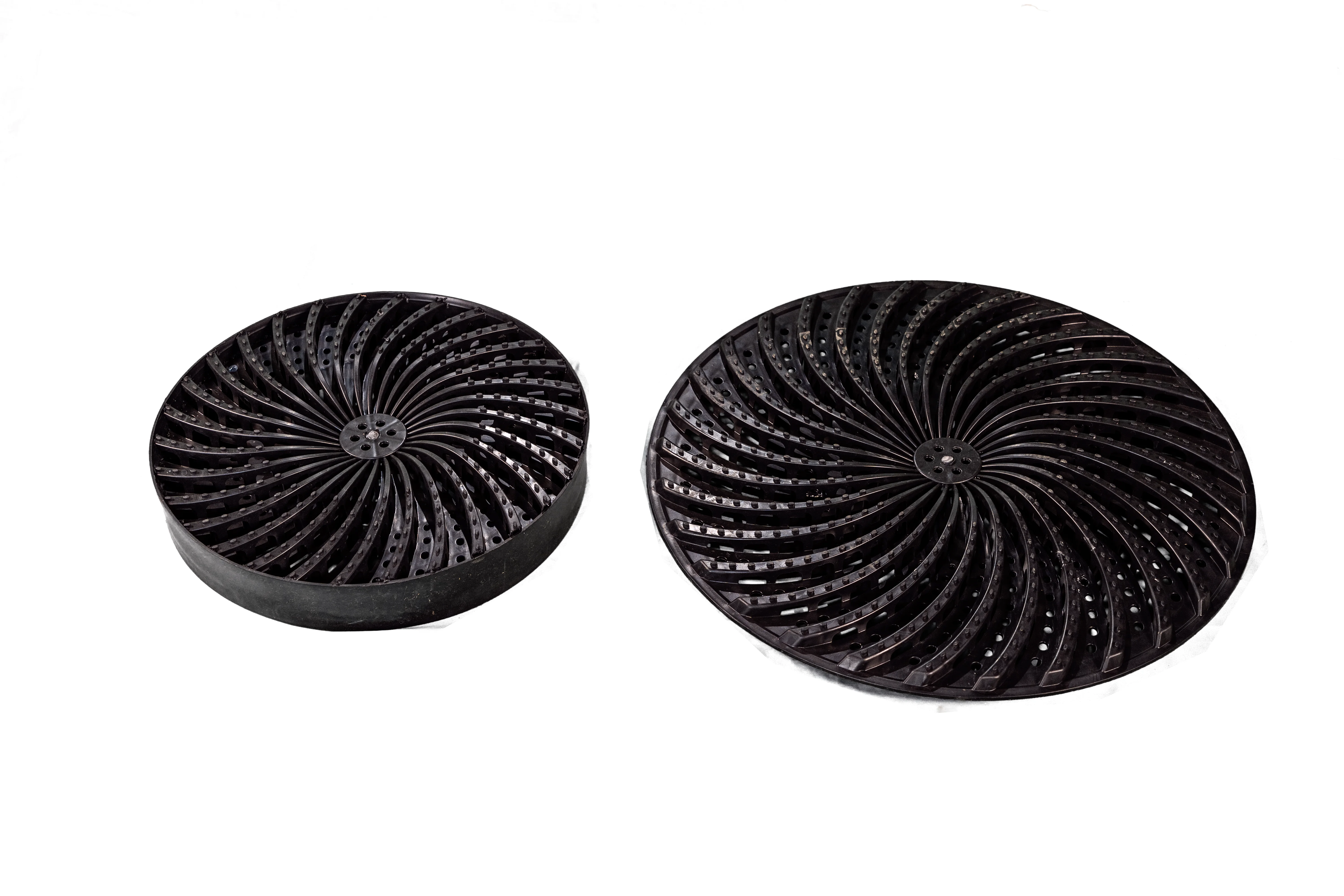 Turbine manhole covers, also known as turbine rainwater grates, are made of alloy plastic produced by injection molding machines. They can effectively intercept fallen leaves and other debris, and quickly remove rainwater, so that the surrounding roads or green belts do not accumulate water. Rainwater collection is not blocked and does not emit odor, alleviating urban waterlogging disasters during the rainy season.